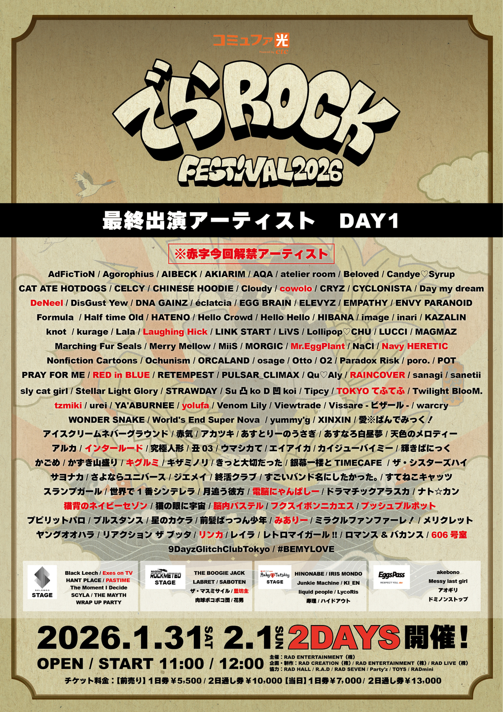 1/31(土) "でらROCK FESTIVAL 2026" @愛知 名古屋市内15会場以上 出演決定!