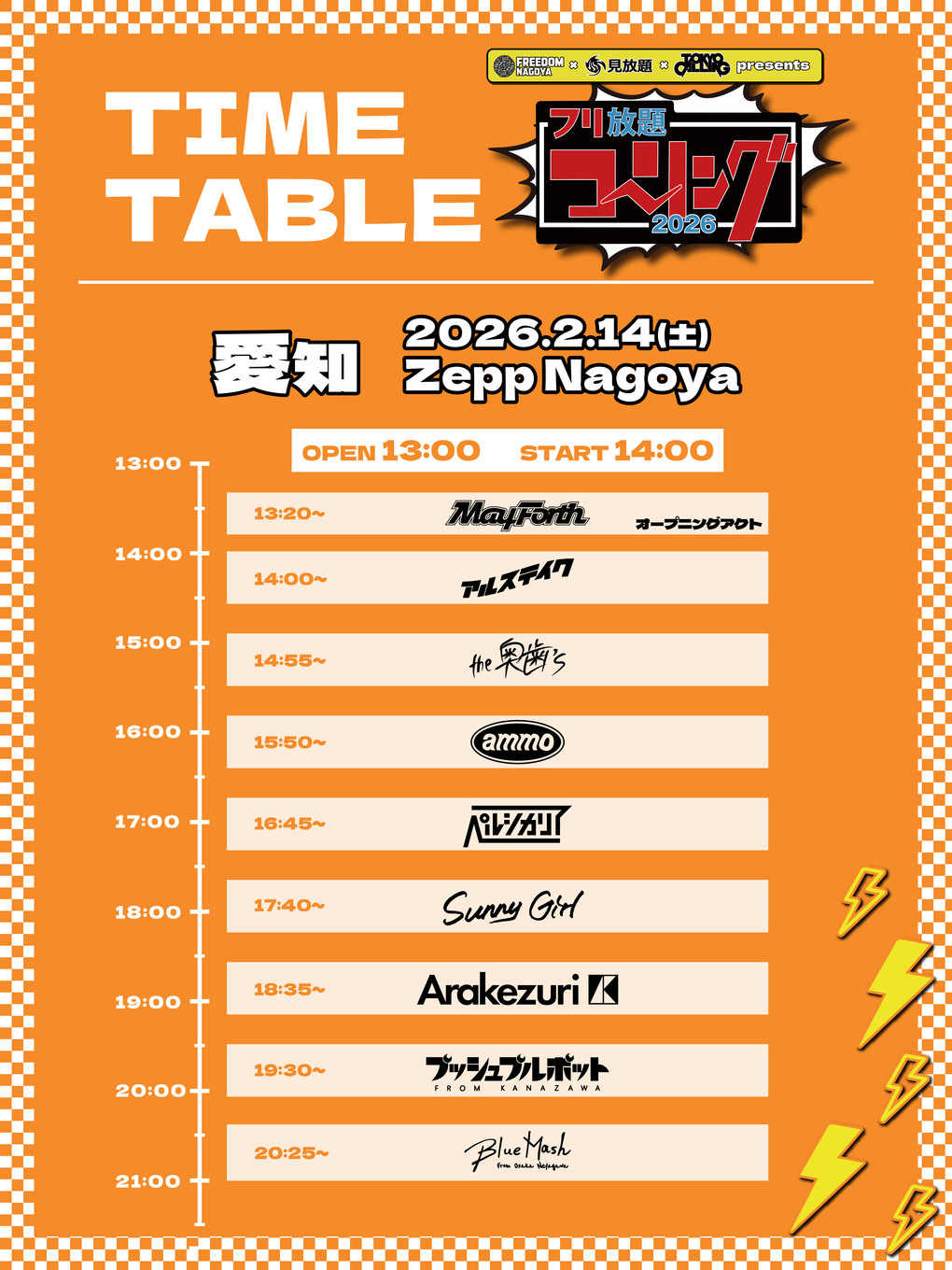 2/14(土) "フリ放題コーリング 2026" @愛知 Zepp Nagoya タイムテーブル解禁!